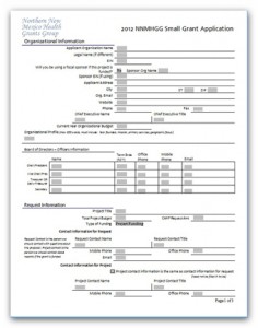 The 2012 NNMHGG Grant Application form is a Word 2003 document that should be easily compatible with newer versions of Word or Open Office Writer. When you first open the document you may need to click “yes” to enable the macros that run drop-down selections.