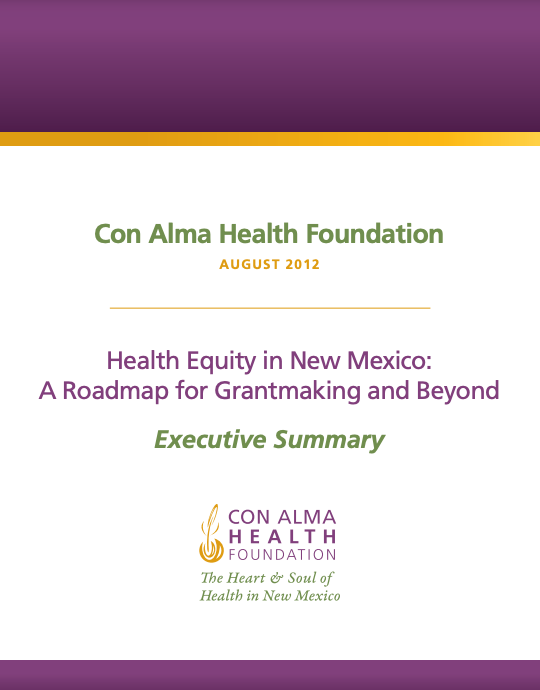 Health equity concerns those differences in health that can be traced to unequal economic and social conditions and are systemic and avoidable – and so essentially unjust and unfair. Con Alma Health Health Foundation has commissioned an update of the 2006 Con Alma Health Foundation Report “Closing the Health Disparity Gap in New Mexico: A Roadmap for Grantmaking” which focuses on achieving health equity and will guide the Foundation’s future grantmaking. The information will also assist us in developing a new strategic plan.