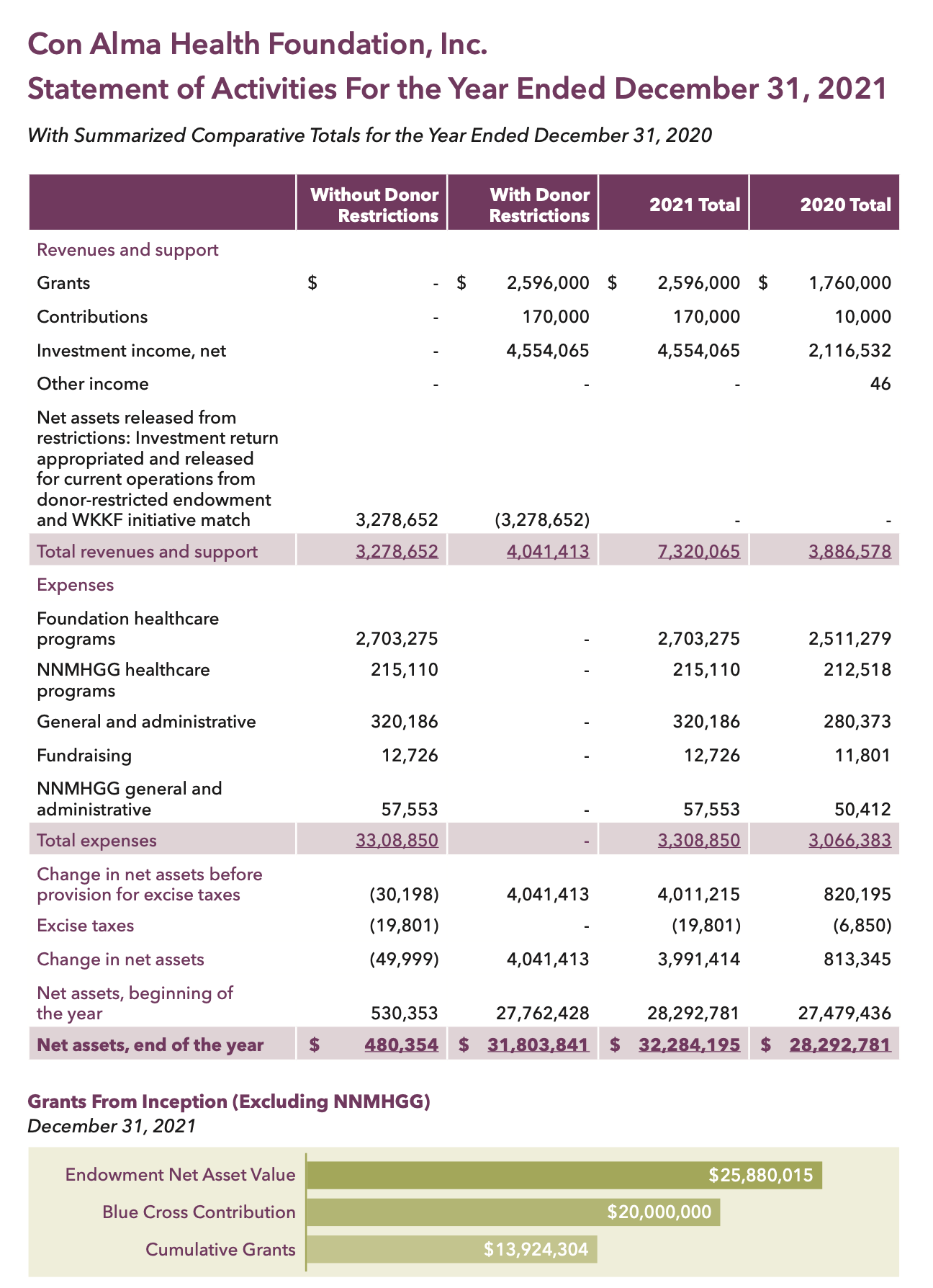 “As we celebrated our 20th year anniversary, our philanthropic reach expanded as we continued to leverage local and national resources to advance health equity statewide.”